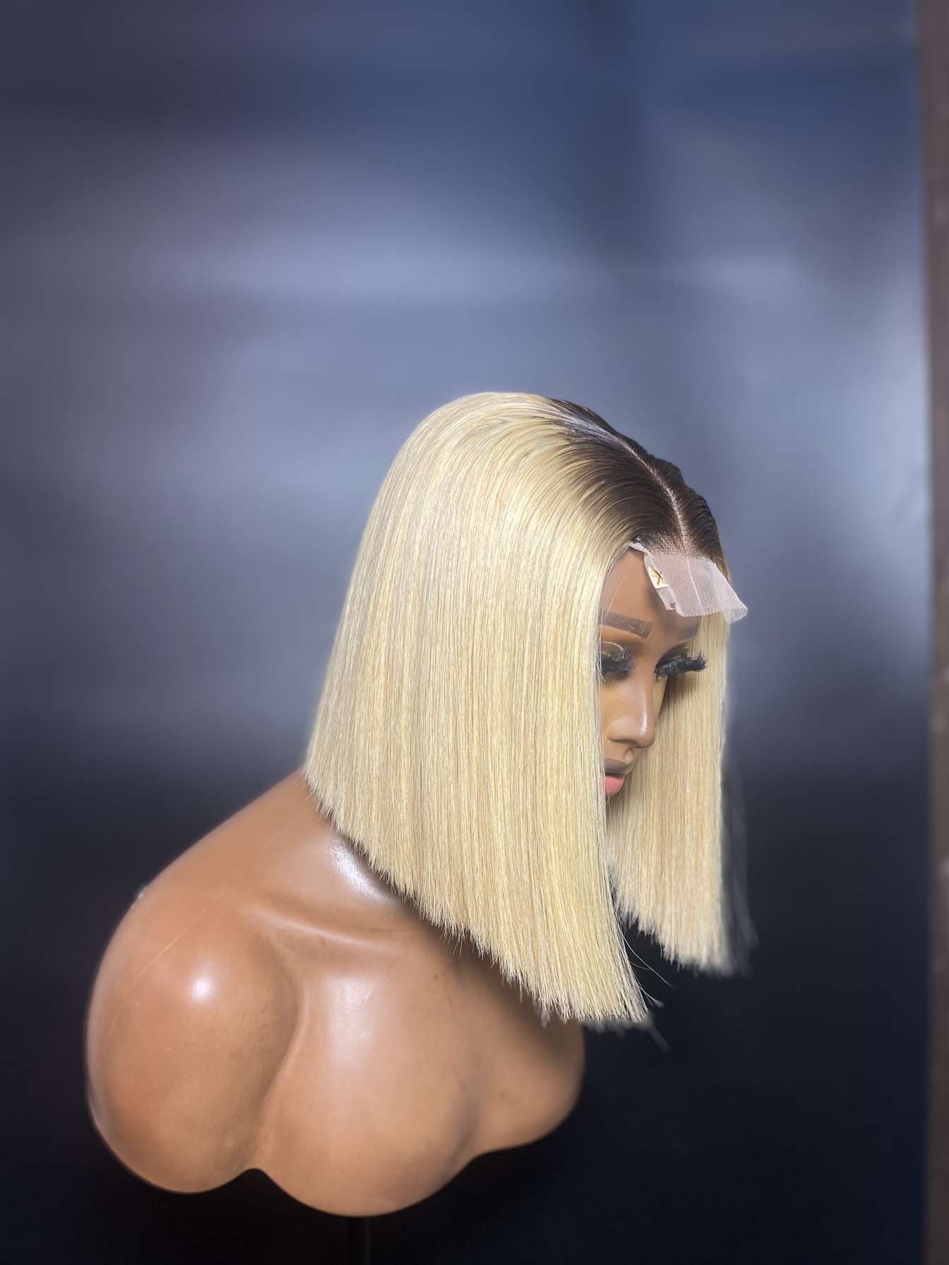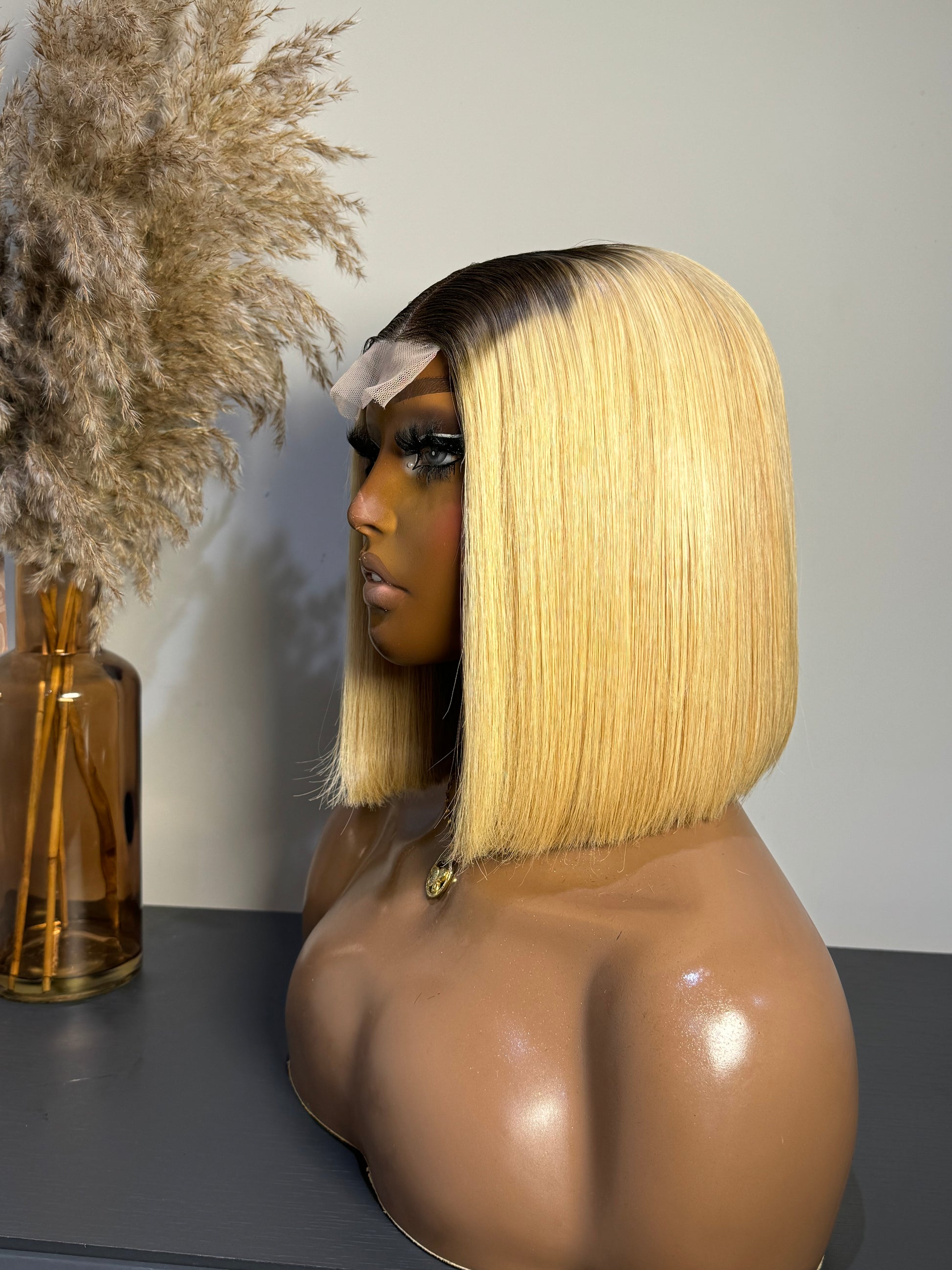 10” 230gram Dark root Blonde Super Double Drawn Veitnam Bone Straight Unit.