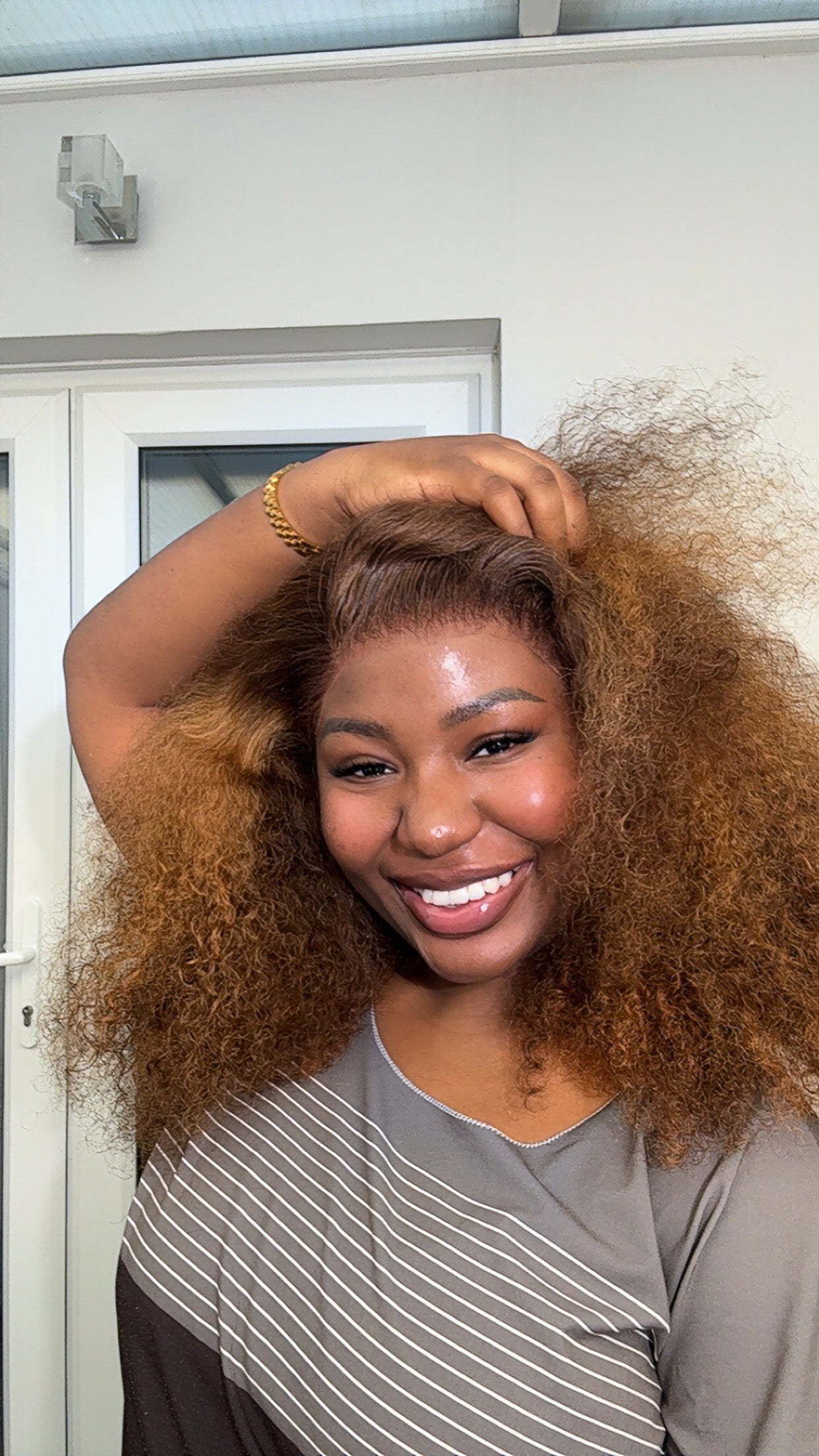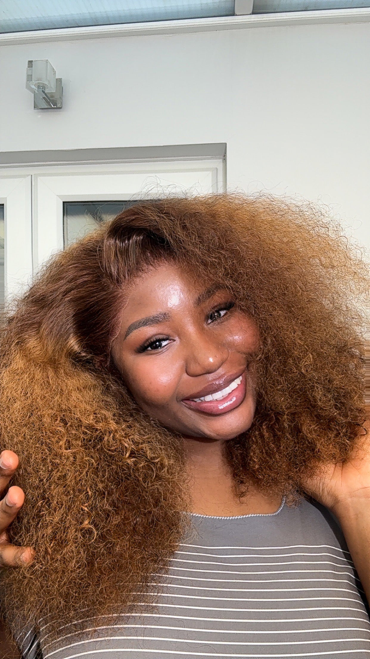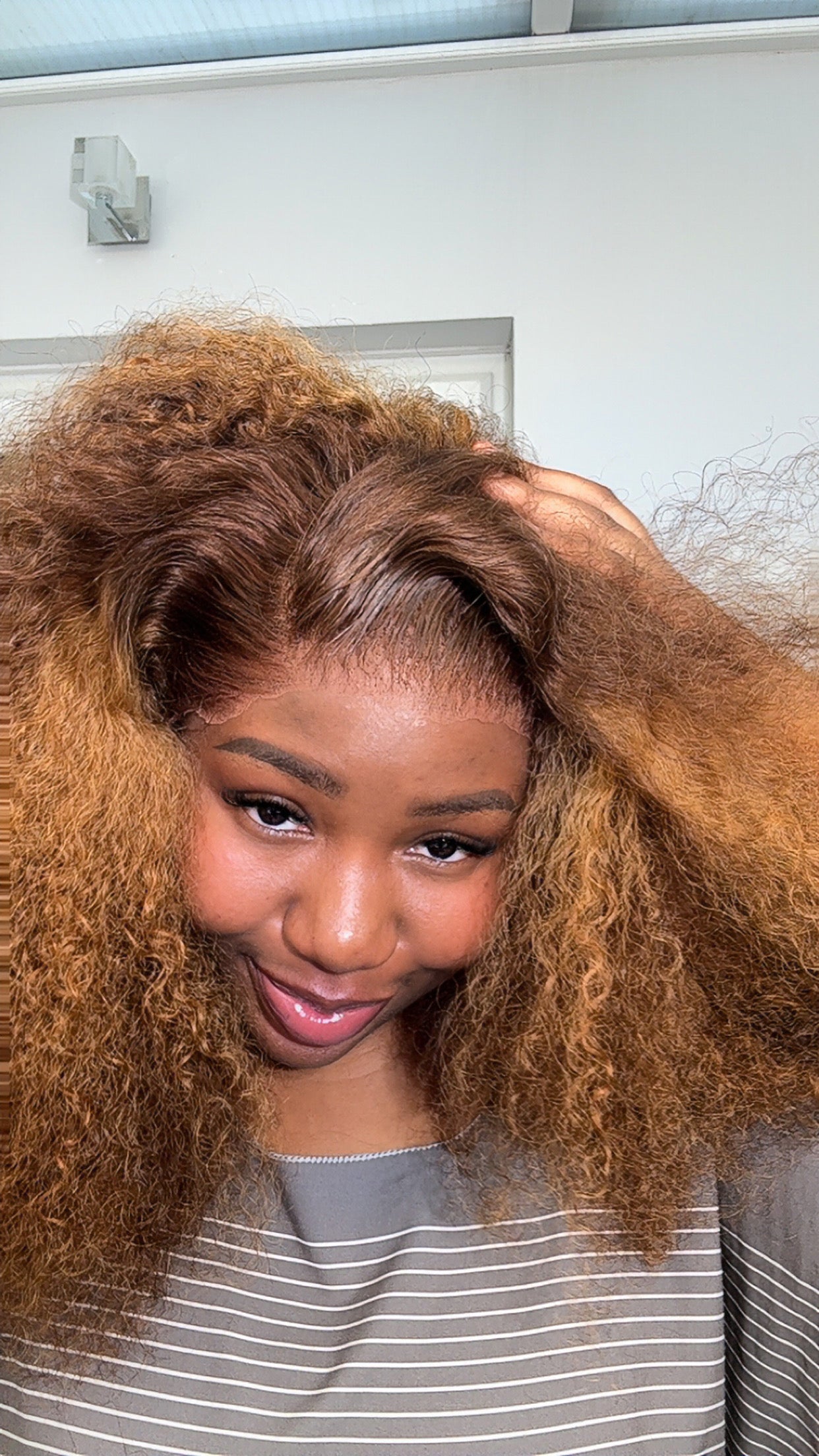 20” SuperDoubleDrawn 13x4 blonde highlighted curls. 300gram Density