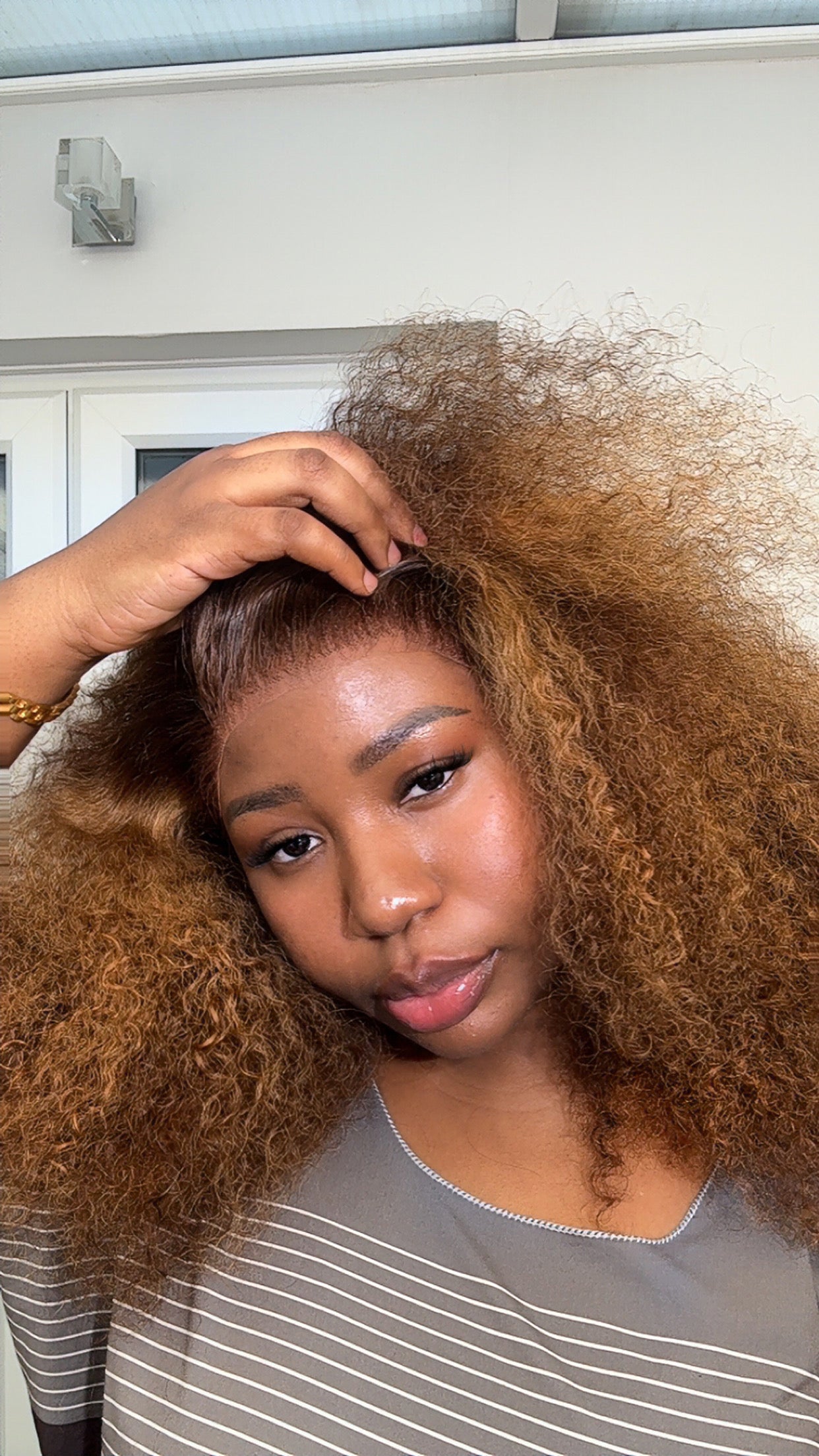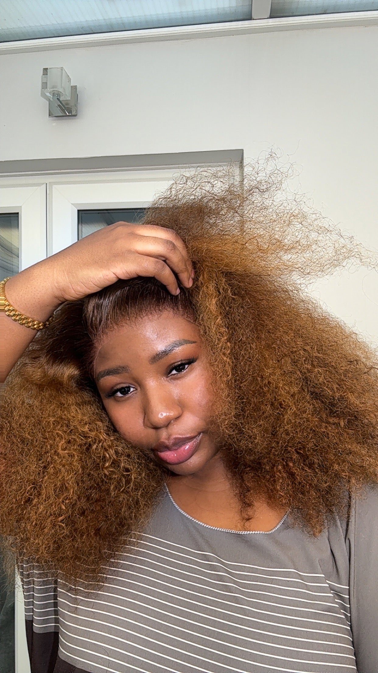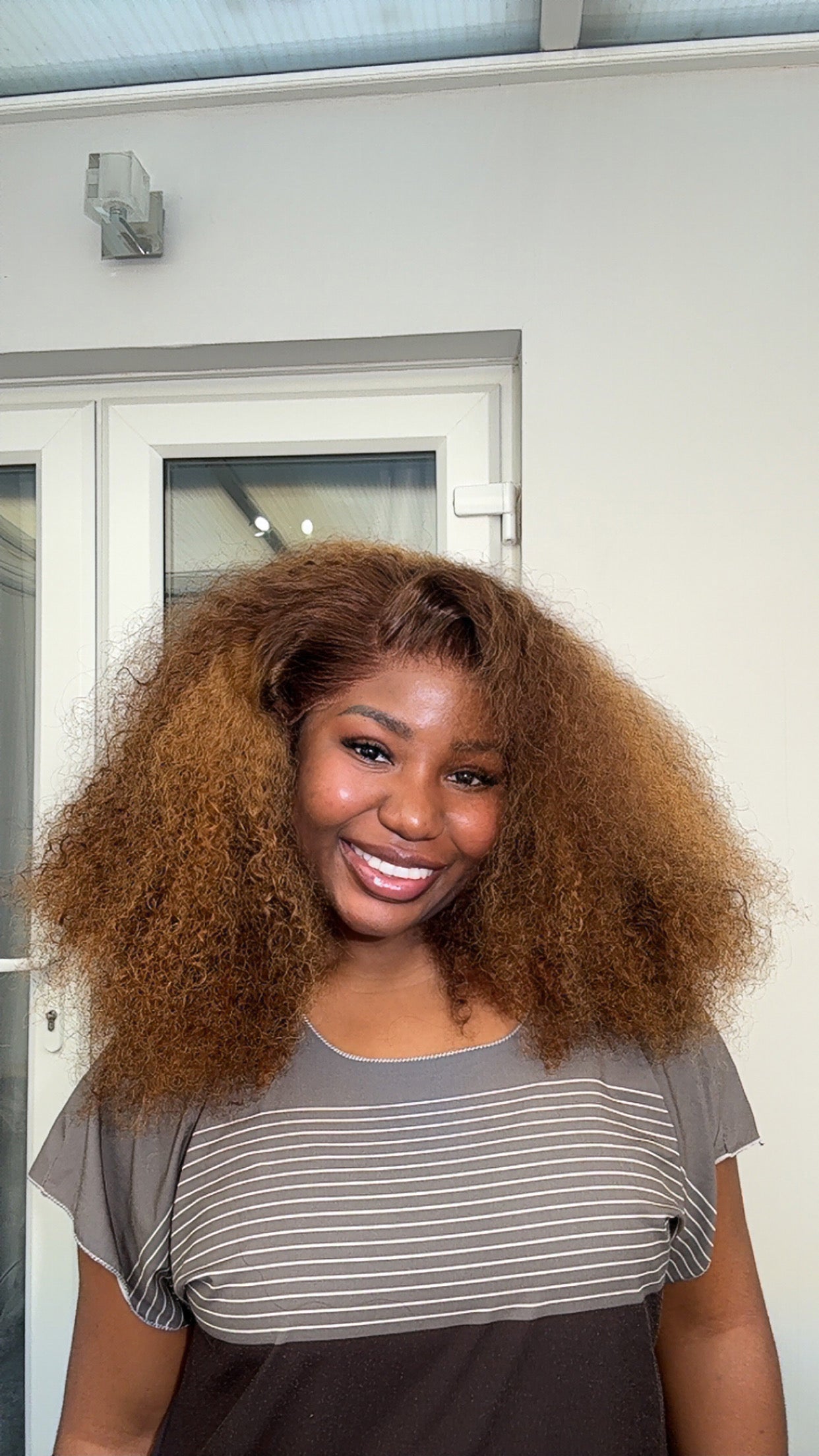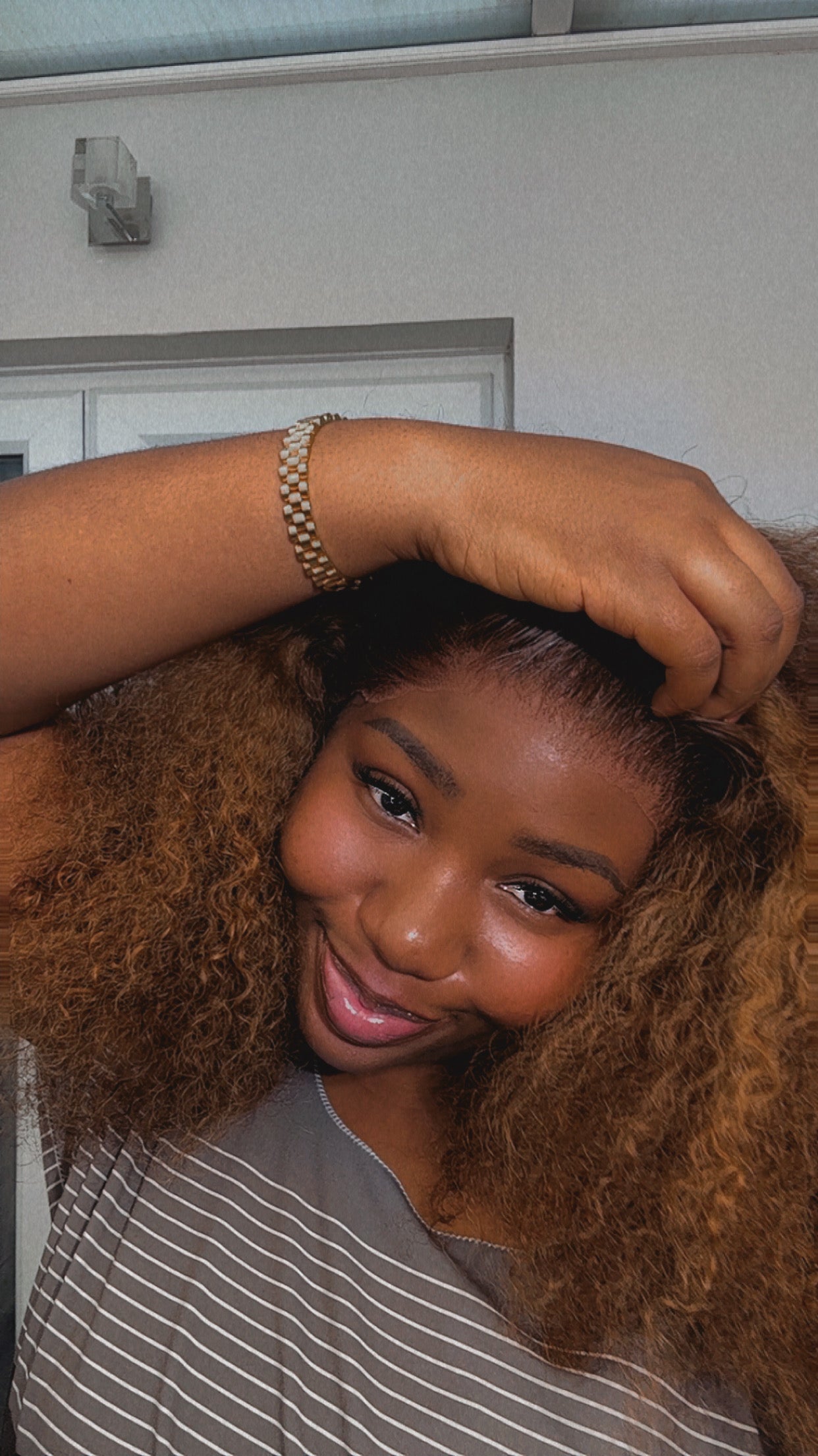 20” SuperDoubleDrawn 13x4 blonde highlighted curls. 300gram Density