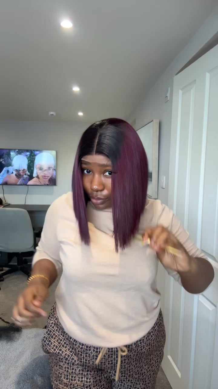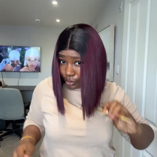 10” SDD Dark Burgundy Bone Straight Bob Wig