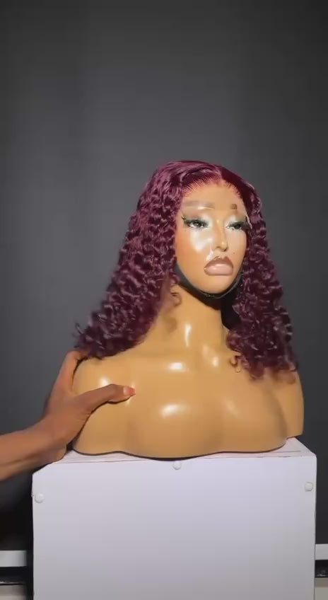 14” 5x5 Glueless 250gram burgundy Eurasian curls