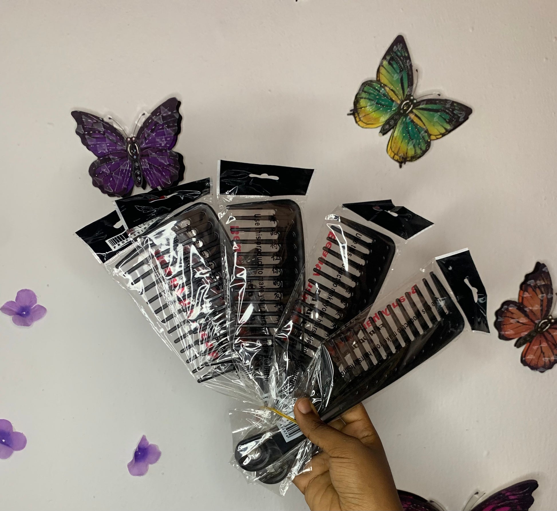 This wide-tooth comb glides through hair without snagging or frizzing. A must-have for curly wigs